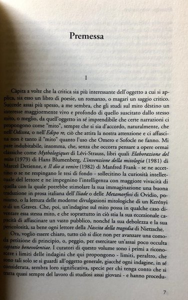 Soggetti: Critica Letteraria, Studi letterari, Miti nella letteratura, Saggi, Mito, Rapporti con la letteratura, Antropologia dialettica, Demitizzazione, Moderno, Proteo, Poeta-mago, Torquato Tasso, Classici, Cultura, Mitologia, Simbolismo, Filosofia, Fuoco, Simbologia, Illuminismo, Lumi, Numi, Sorte, Destino, Sorte, Genere Umano, Giacomo Leopardi, Poesia, Poetica, Romanzo, Poemi, Giovanni Pascoli, Luigi Pirandello, Carlo Emilio Gadda, Deformazione, Teorie, Narrativa contemporanea, Libri fuori catalogo, Studi culturali, Cultural studies, Literatur, Mythos, Aufsatzsammlung, Myth, Italian literature, History and criticism, Mythologie, Thèmes, Motifs, Littérature italienne, Mythe, études diverses, Literary Criticism, Literary Studies, Mythology, Myths in Literature, Essays, Relationships, Dialectic Anthropology, Demitization, Modern, Proteus, Poet-magician, Classics, Culture, Symbolism, Philosophy, Fire, Symbology, Enlightenment, Human Genre, Poetry, Poetics, Romance, Poems, Deformation, Theories, Contemporary Fiction, Vintage and out of print Books, Lévy-Strauss, Blumenberg, Edipo Re, Odissea, Iliade, Metamorfosi, Manfred Frank, Marcelle Detienne, Silvia Pegoraro