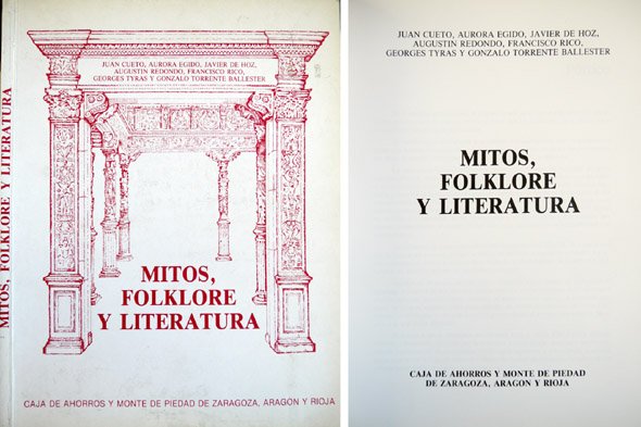 Mitos, Folklore y Literatura. [Aurora Egido: Introducción; Javier de Hoz: De Polifemo a Filoctetes. Mito y folklore en el ciclo homérico; Georges Tyras: Vitiza el contra-modelo: un relato trifuncional en la "Primera Crónica General"; Francisco Rico: 'Aristoteles Hyspanus': en torno a Gil de Zamora, Petrarca y Juan de Mena; Augustín Redondo: Folklore y literatura en el "Lazarillo de Tormes": un planteamiento nuevo (El caso de los tres primeros tratados); Juan Cueto: Mitos de la modernidad; Gonzalo Torrente Ballester: Diversas formas de mito en mi obra].