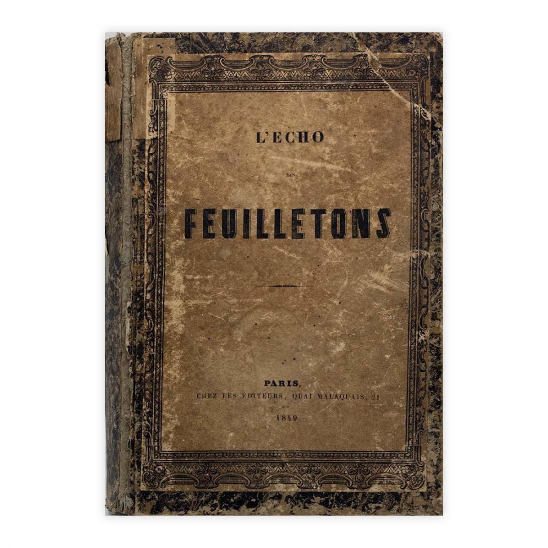 Autori: MM. Dufour et Mulat Titolo: L'Écho des Feuilletons Sottotitolo: Recueil de nouvelles, légendes, anecdotes, épisodes, etc. Edizione: Paris, Chez les Éditeurs, Quai Malaquais 1849 Dimensioni: 16 x 24 cm c.a. Pagine: 574 Copertina: Cartonato Condizioni: Buone come da foto