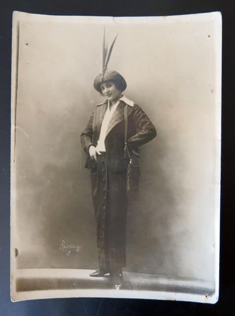 Argus, Milano, 1933 (al verso). circa. Fotografia all’albumina raffigurante modella con abito per la moda di Parigi, anno 1933, b/n, cm 13 x 18 circa, timbro “Argus” al verso. Piccoli difetti, nell’insieme in buono stato di conservazione.