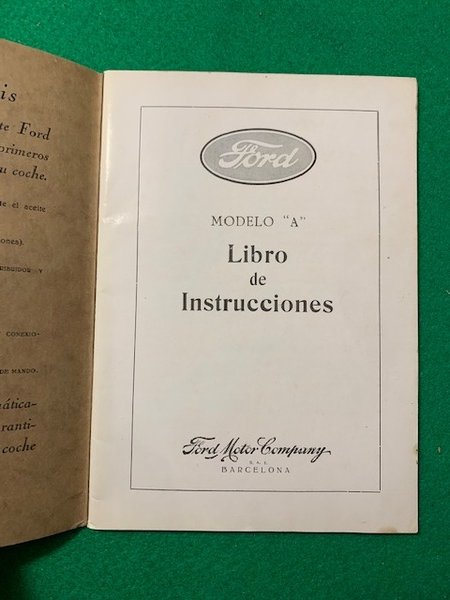 In 4°; 51, (3) pp. Brossura editoriale con titolo in nero al piatto anteriore. Qualche traccia di sporco al piatto anteriore e all'interno in ottime condizioni di conservazione. Raro manuale di istruzioni per il modello "A" in lingua spagnola. "La Ford Model A prodotta dal 1927 è la seconda autovettura Ford in cui viene utilizzata la prima lettera dell'alfabeto, dopo il primo modello assoluto della produzione di questa casa automobilistica statunitense, la Ford Model A (1903).".