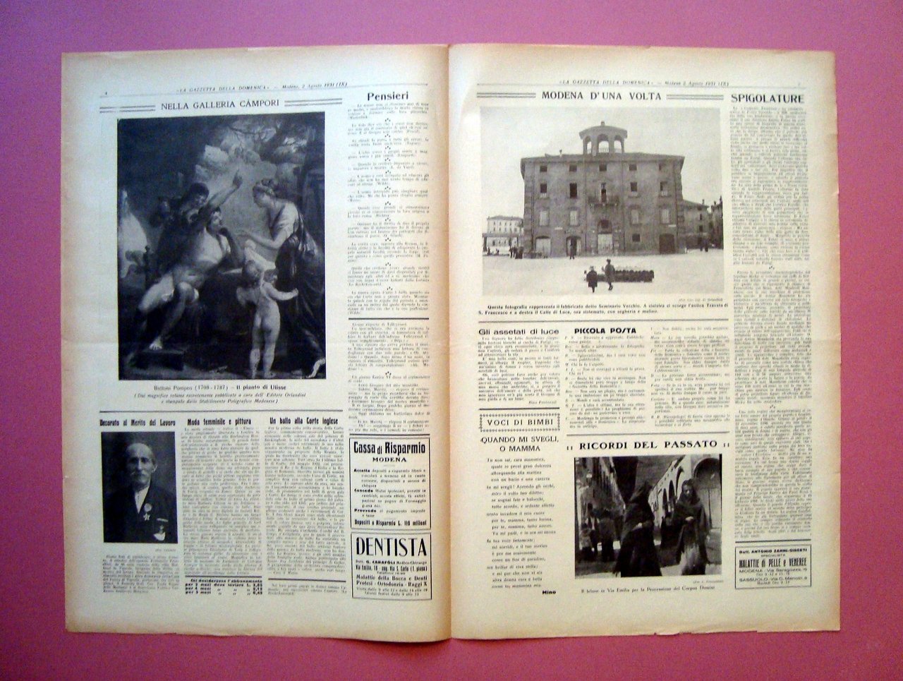 Modena Seminario Vecchio Rua Muro Gazzetta della Domenica 2/8/1931 Frassoldati