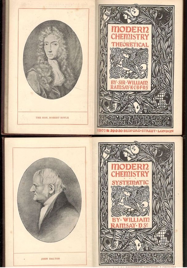 Due volumi in 16° (cm. 15x10), pp. 132, (2); 203, (1). Tela editoriale amaranto con titoli oro sui dorsi. Antiporta con i ritratti di Robert Boyle e John Dalton. Qualche annotazione a matita. Copia in buono stato. Della serie: Temple Primers. Sugli occhietti firma di possesso dello scienziato genovese Mario Basadonna.