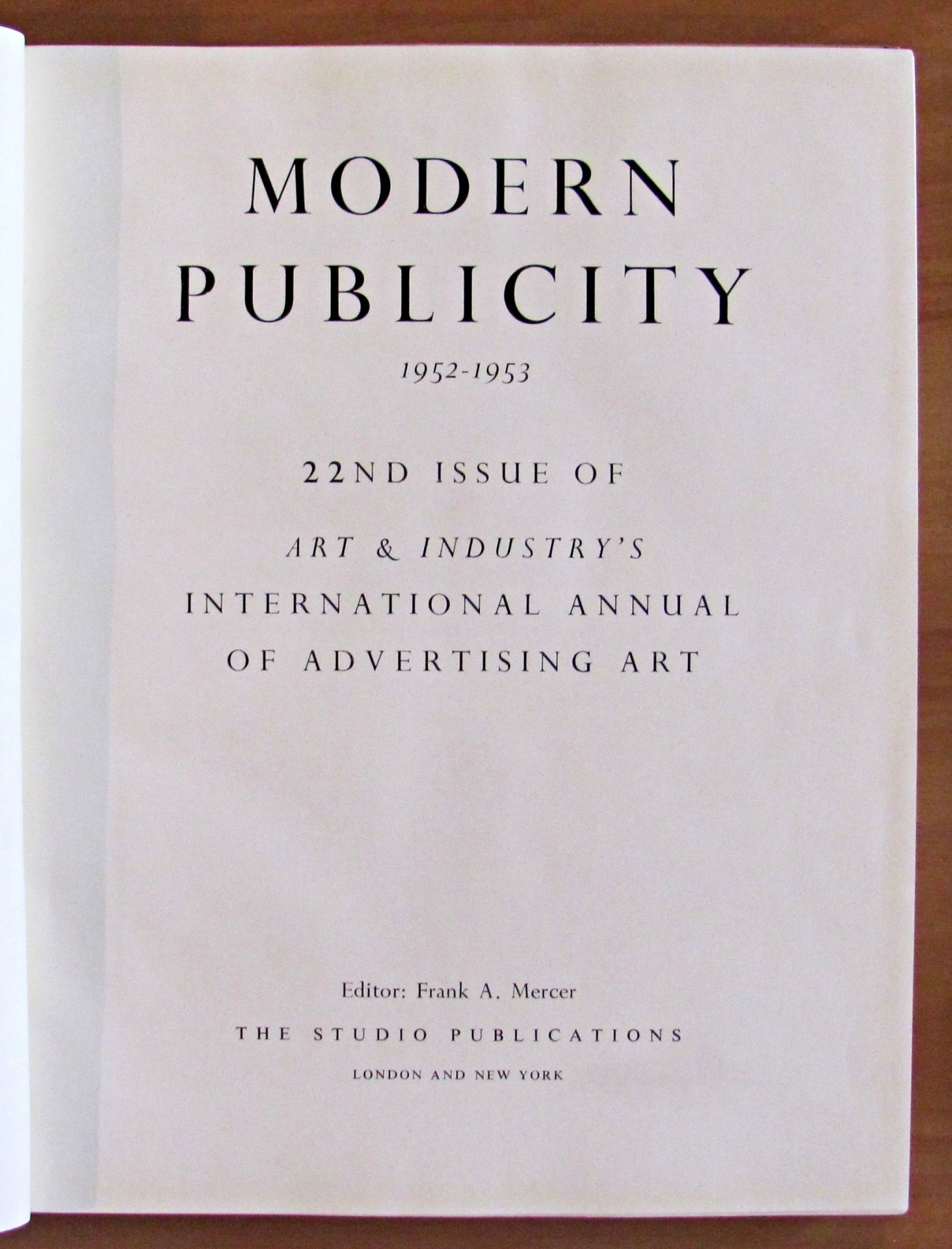 Illustrazioni in b/n e a colori a tutte le pagine di pubblicità d'epoca. Ed. Frank A. Mercer "The Studio Publications" London, 1952. Tela editoriale con titoli in oro al dorso. Piccolissimo taglietto della tela alla cerniera. Interno come nuovo. 23,5x29; pp.130 + XIV. RARO e in OTTIMO STATO