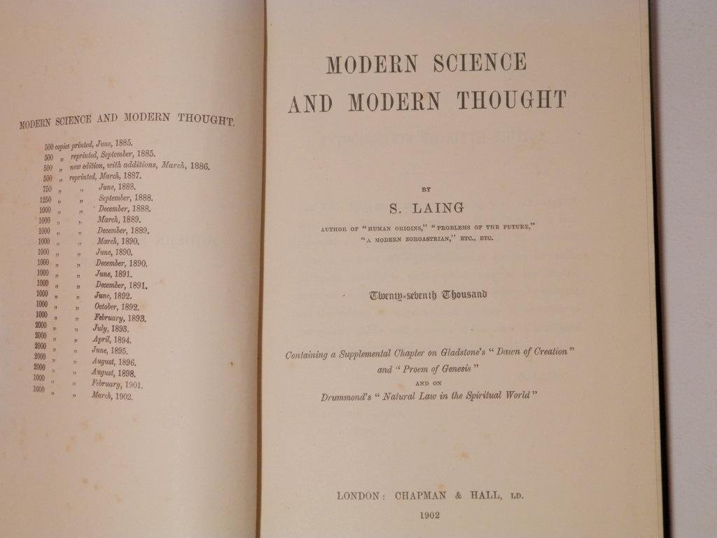 8°, 22 cm, pp. XIII, 382; contiene anche: Chapter on Gladstone's Dawn of Creation, Proem of Genesis and on Drummond's Natural Law in the Spiritual World. Rilegatura coeva in piena tela, titolo in oro al dorso. Esemplare molto buono e intonso. *** TUTTI I NOSTRI LIBRI SONO VISIBILI PREVIO CONTATTO MAIL O TELEFONO NELLA NUOVA SEDE DI MILANO: LIBRERIA COSMOPOLIS, VIA JOMMELLI, 22. ***