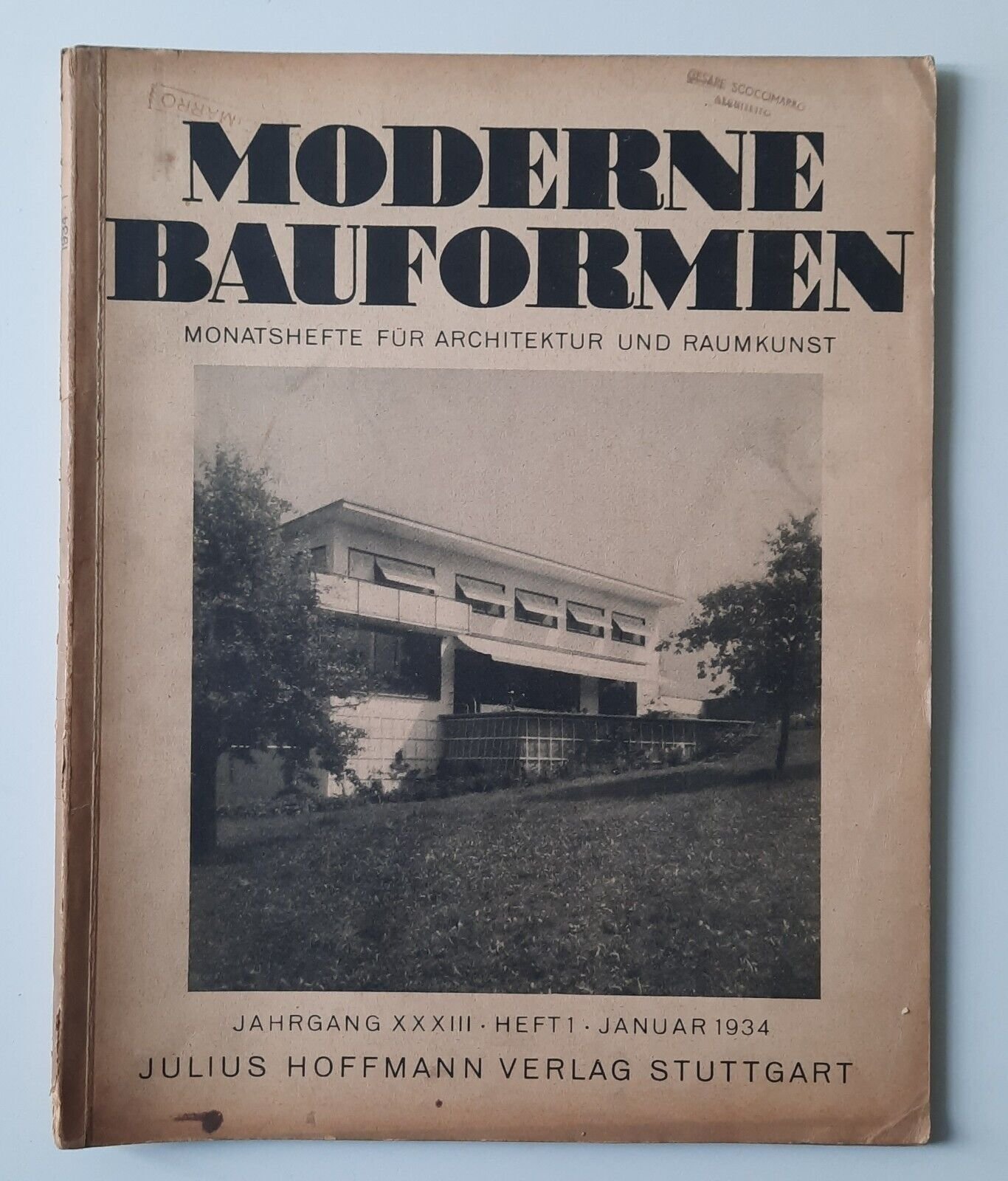 MODERNE BAUFORMEN RIVISTA N 1 JANUAR 1934 In 4°, legatura editoriale, copertina illustrata, ill. in b/n e a colori.Lievi segni del tempo.Ulteriori dettagli e immagini a richiesta.