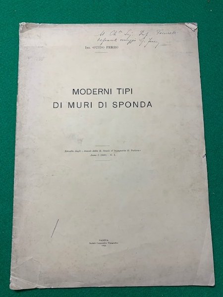 In 4°; 18, (2) pp. Brossura editoriale con titolo impresso in nero al piatto anteriore. Dedica autografa dell'autore al margine alto del piatto anteriore. Prima edizione in forma singola di questo estratto degli "Annali della R. Scuola d'Ingegneria di Padova" nello stesso anno.