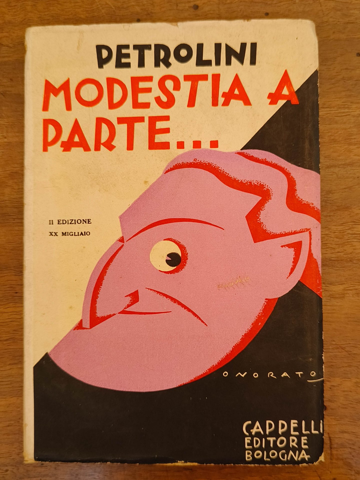 Modestia a parte…, Bologna, Cappelli, 1932. Cm 19. Pp. 195. Brossura editoriale illustrata da Onorato. Numerose illustrazioni fuori testo e nel testo. Dedica autografa dell'autore a "GR. Crippa" (Geo Renato Crippa, scrittore bergamasco) datata Bergamo 1933 XI.