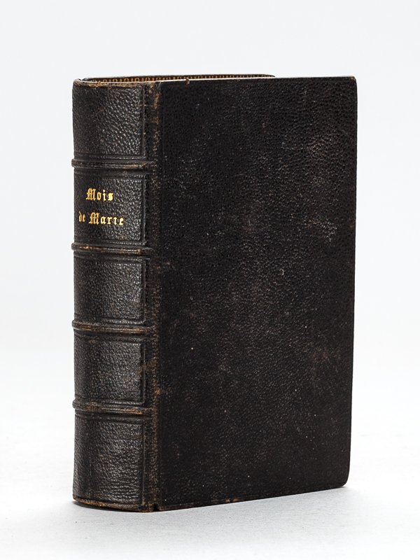 3e édition augmentée d'exemples pour chaque jour, 1 vol. in-18 relié plein chagrin noir, dos à 4 nerfs, toutes tranches dorées, filet doré sur coupes, chasses ornées, A la Librairie Catholique, Clermont-Ferrand, 1857, 711 pp. Bon état.