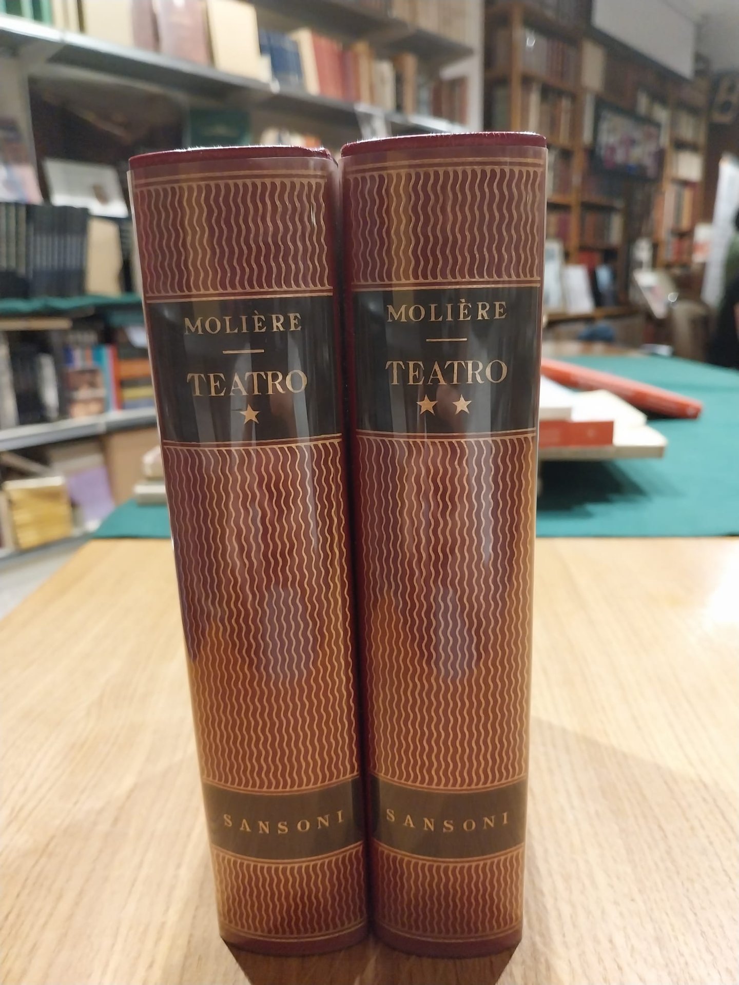 Opere teatrali di Molière. Rilegato in pelle. Incisioni in oro ed etichetta nera sul dorso. Condizioni ottime, quasi nuovo.