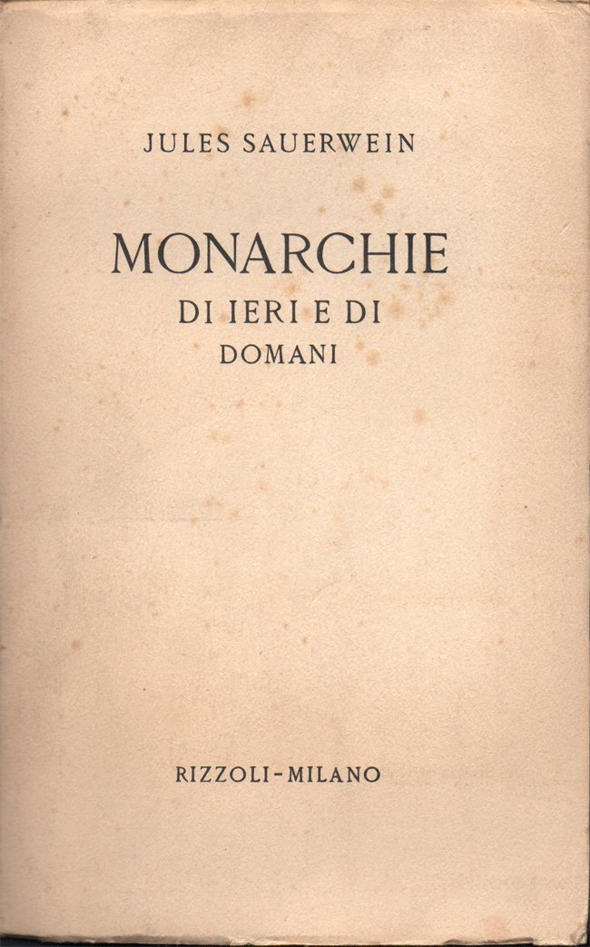 In-8° (20,8 x 13 cm), pp. 235, (5), copertina editoriale, con normali tracce d'uso e del tempo. Manca la sovraccoperta editoriale illustrata. Con otto tavole fuori testo ospitanti undici illustrazioni fotografiche in bianco e nero. Pochi, piccoli, leggeri segni d'umido all'occhietto e all'ultima pagina. Normale, lieve patina del tempo alle pagine, per il resto, ben conservato. L'autore descrive la vita in Portogallo di re Umberto d'Italia, dell'Erede di Spagna don Juan e del conte di Parigi discendente dei re di Francia, a seguito dell'allontanamento delle loro famiglie dai rispettivi paesi di origine. Indice. Prefazione. I. Vitalità e funzione delle monarchie nell'Europa di domani. II. Il pensiero dei tre principi sui nuovi compiti delle monarchie. 1. Dichiarazioni di re Umberto. 2. Dichiarazioni del conte di Parigi. 3. Dichiarazioni di don Juan. III. Tre principi attendono la loro ora. 1. In casa di re Umberto. 2. In casa del conte di Parigi. 3. In casa di don Juan di Spagna.