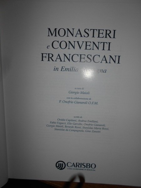 A cura di Giorgio Maioli. Bologna, Re Enzo Editrice per Carisbo, 1995. Monasteri e Conventi Francescani in Emilia Romagna. In-4°, tela verde e oro. 211 pp. con numerose illustrazioni fotografiche a colori e in bianco e nero n.t. In ottimo stato di conservazione. Sono disponibili 2 copie a euro 20 cad. più spese. Neg. arte mob. 18 - altra Uff. TV carc.