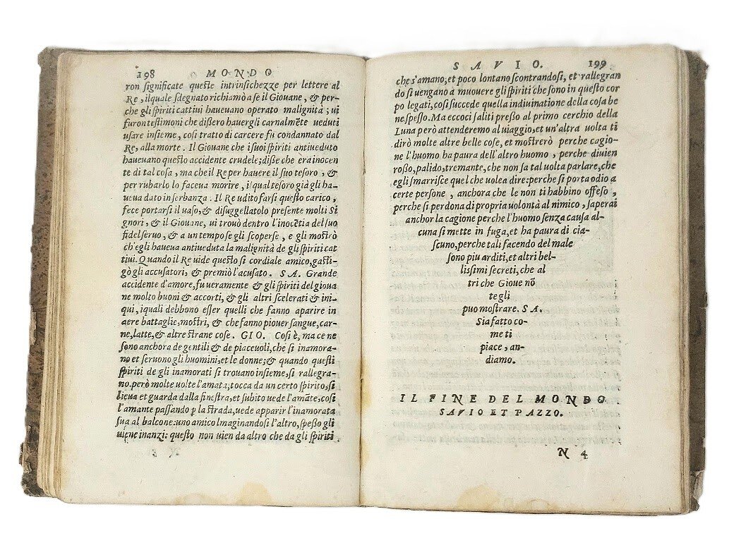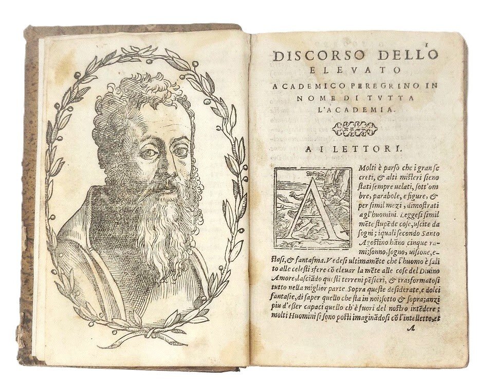 >in-8, pp. (16), 429, (3, di cui l'ultimo f. bianco), leg. ottoc. m. pelle, filetti oro e tassello al dorso (punte lievemente logorate e dorso stanco). Impresa tipogr. al tit., iniz. silogr., car. corsivo; ritratto silografico a piena pagina dell'autore entro corona d'alloro alla fine dell'indice. Pregevole edizione (la prima apparve nel 1552-3). Lievi gore d'acqua; antichi scarabocchi al tit. e note di possesso agli ultimi 2 ff. DBIT , 41, p. 164. STC 226 . Caillet I, 3198 (ediz. poster. in francese). Adams D-826.