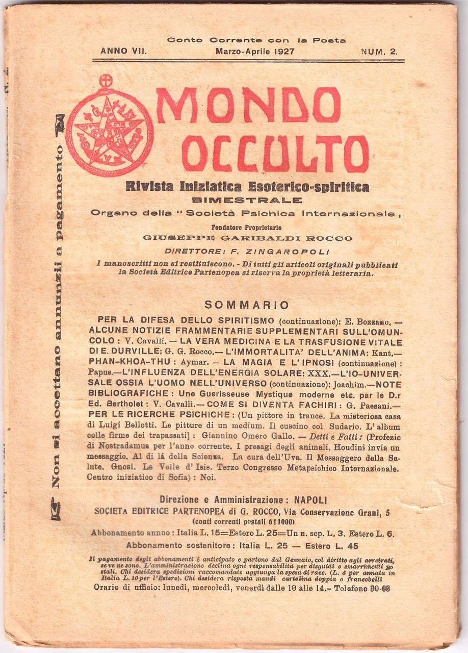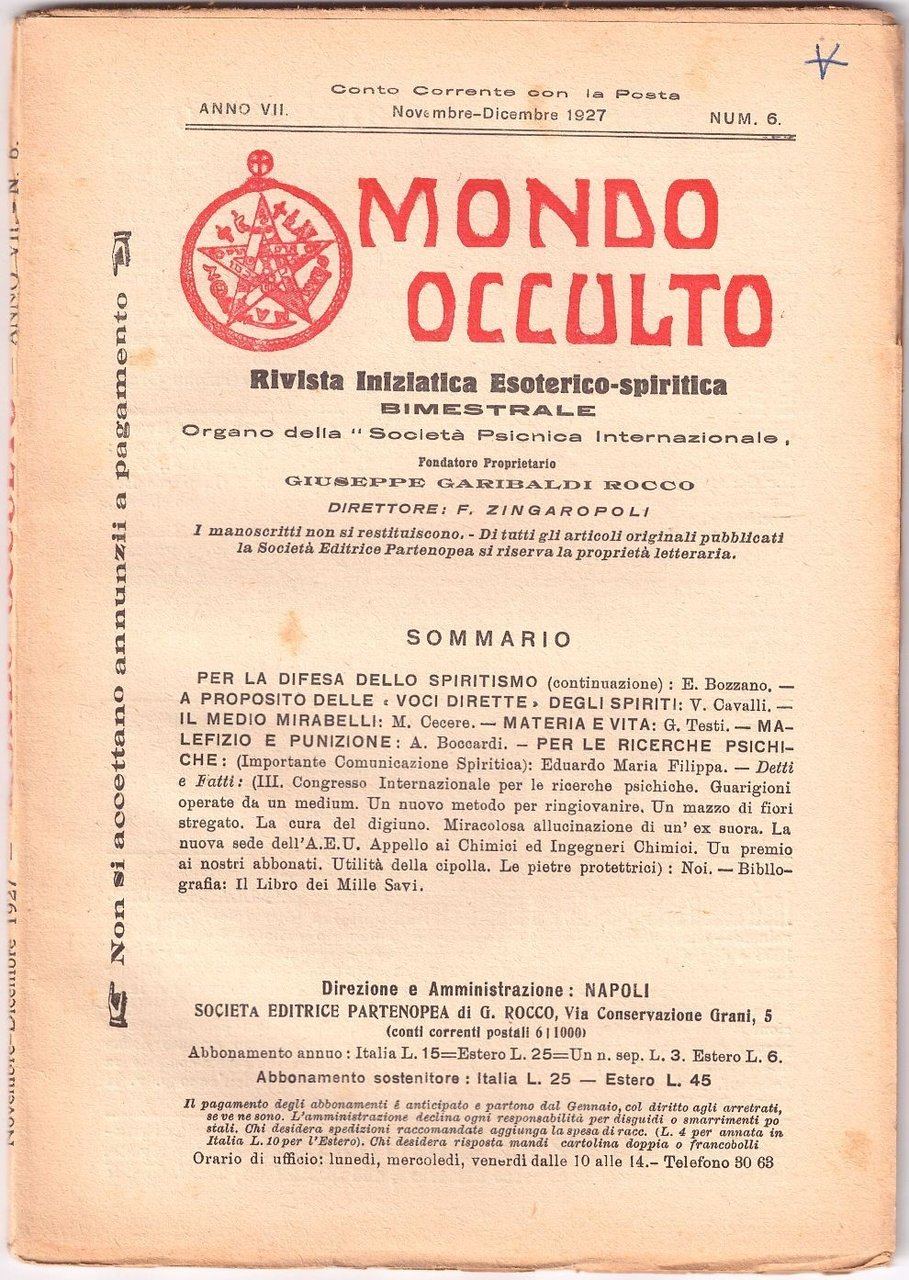 MONDO OCCULTO rivista iniziatica esoterico spiritica. Bimestrale. Anno VII annata completa di 6 numeri del 1927.