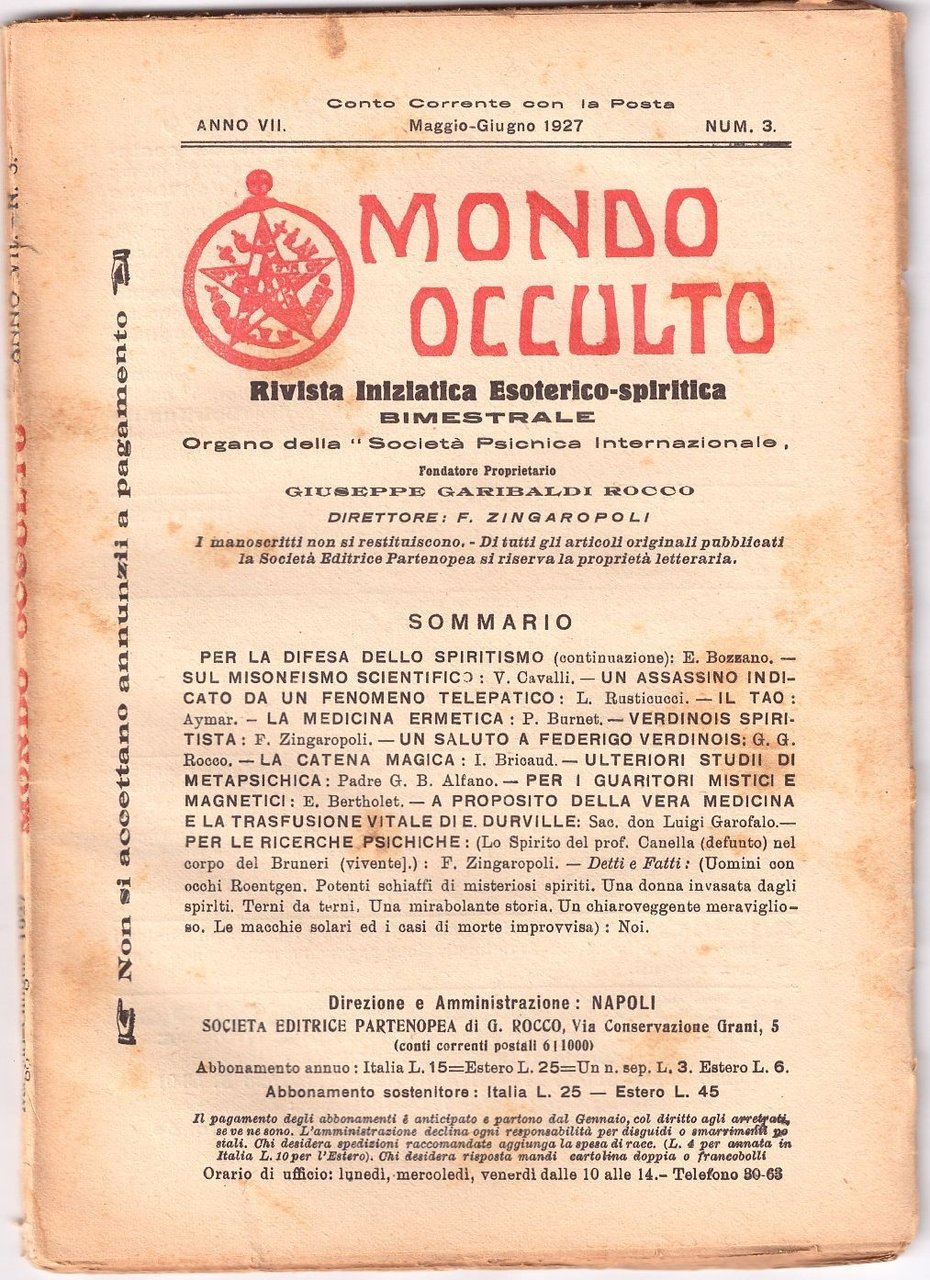 MONDO OCCULTO rivista iniziatica esoterico spiritica 1927 ANNATA COMPLETA ANNO 7