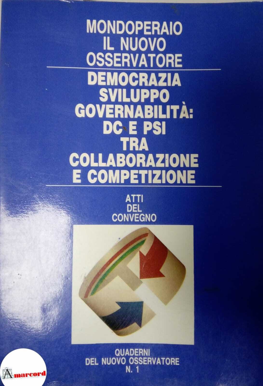 Mondoperaio, Democrazia sviluppo governabilità: DC e PSI tra collaborazione e competizione, Quaderni del Nuovo Osservatore, vol. 1, 1985 - I, in-8, brossura, pp. 383, ottimo.