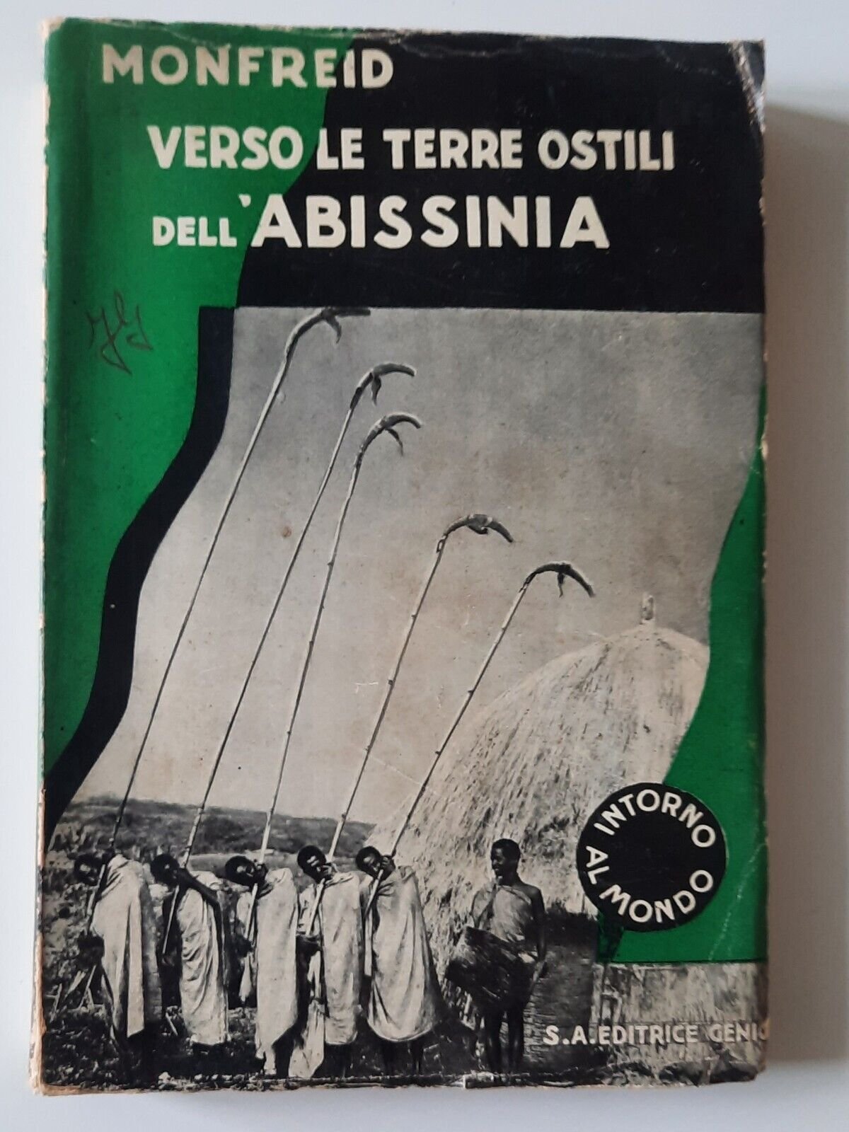MONFREID VERSO LE TERRE OSTILI ELL'ABISSINIA ED. GENIO 1935In 8°, legatura editoriale, copertina illustrata, ill. in b/n.In ottime condizioni, lievissimi segni alla sovracopertina.