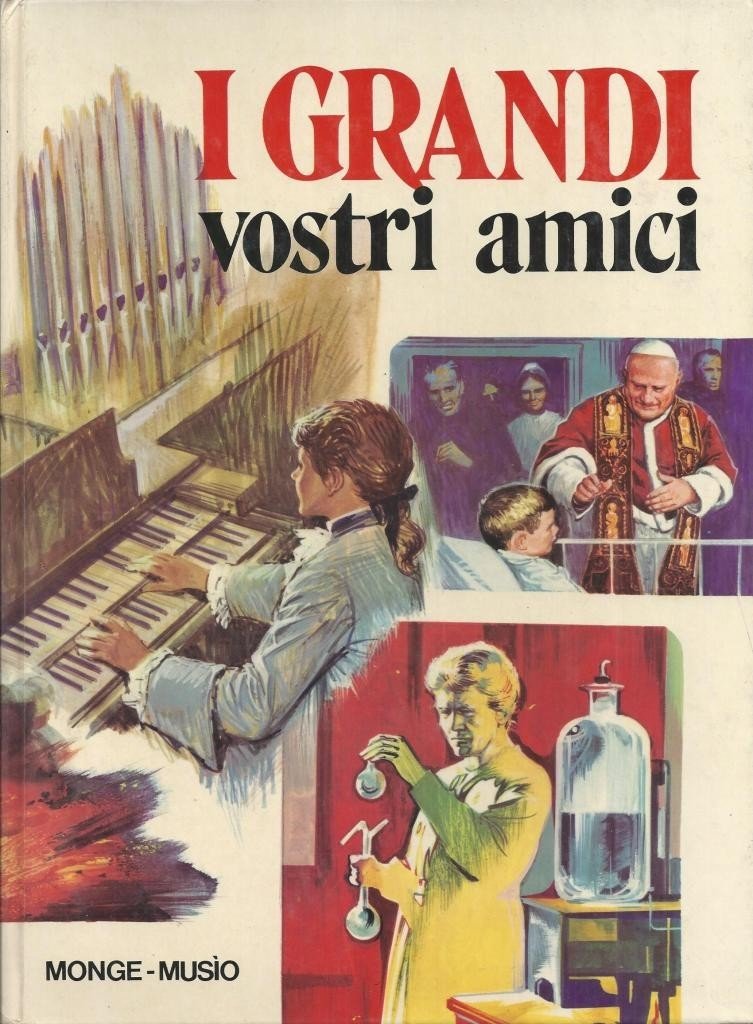 Attilio Monge, I grandi. Vostri amici, illustrazioni di Nino Musio, Edizioni Paoline, s.l. 1974, pp. 203, ill. col., cm 29, cart. ed. Collana I più bei libri per ragazzi, vol. 10. Leggere tracce d’uso, minime fioriture al taglio superiore, per il resto buona copia.
