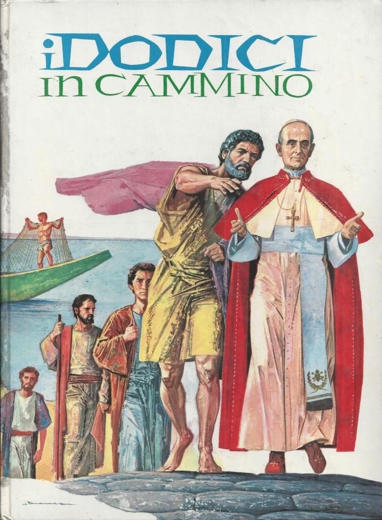 Attilio Monge, Bruno Simonetto, I Dodici in cammino. Storia della Chiesa, illustrazioni di Gianni De Luca, Edizioni Paoline, Roma 1967, pp. 312, ill. col., cm 30, cart. ed. con titoli e ill. al piatto. Collana I più libri per ragazzi, vol. 3. Leggere tracce d’uso, tre carte con minime abrasioni e mancanze ai margini, ma nel complesso buona copia.