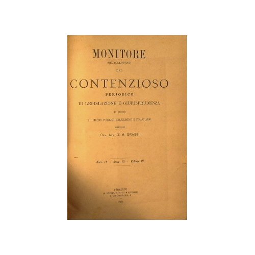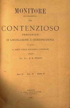 Monitore del Contenzioso.Periodico di Legislazione e Giurisprudenza in ordine al Diritto Pubblico Ecclesiastico e Finanziario.Anno IX Volume III 1885
