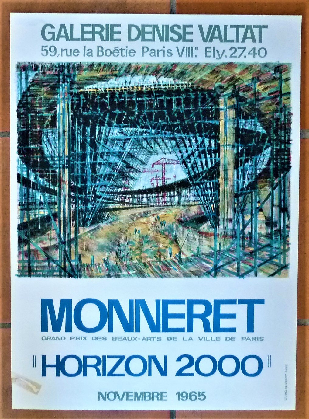Monneret "Horizon 2000". Affiche éditée à l'occasion de l'exposition à la Galerie Denise Valtat; novembre 1965.