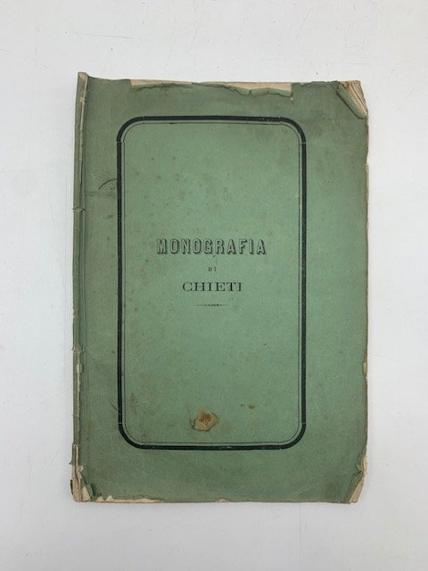 In 16 (cm 14,5 x 21), pp. 32. Bruniture sparse alle pagine. Qualche crocetta a matita ai margini del testo. Brossura editoriale. Breve saggio pubblicato in opuscolo con la voce Chieti apparsa sul 'Dizionario corografico illustrato dell'Italia' in forma compendiata. Cfr. 'Saggio di bibliografia statistica italiana', p. 40. Minieri Riccio, 'Biblioteca storico-topografica degli Abruzzi', vol. 2, p. 62: "L'autore da' breve notizia della posizione topografica, estensione, popolazione, produzioni naturali, agricoltura, industria, stabilimenti pubblici, origine storica ed uomini illustri della citta di Chieti".