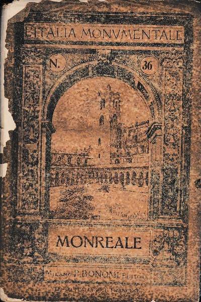 Monreale. Sessantaquattro illustrazioni. Milano, E. Bonomi, 1917, in-16, br. edit. in carta pergamenacea, pp. XXVII. Con 64 tavv. fotografiche. "L'Italia Monumentale" n. 36. Completo ma con segni del tempo e strappi