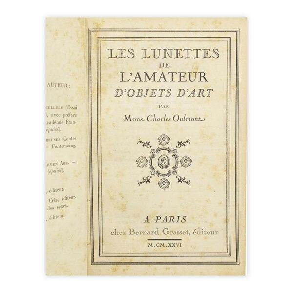 Autore: Mons. Charles Oulmont Titolo: Les lunettes de l'amateur Sottotitolo: D'objets d'Art Edizione: Chez Bernard Grasset, éditeur M.CM.XXVI Dimensioni: 11 x 17,5 cm c.a. Peso: 0,348 kg Copertina: Brossura Condizioni: Buone come da foto