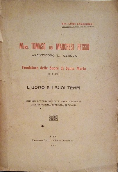 MONS. TOMASO DEI MARCHESI REGGIO ARCIVESCOVO DI GENOVA, FONDATORE DELLE SUORE DI SANTA MARTA