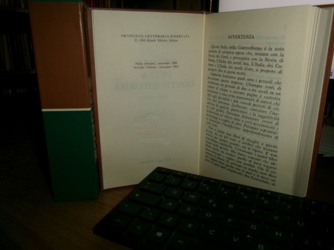 INDRO MONTANELLI - ROBERTO GERVASO. L' Italia della Controriforma (1492-1600). Milano, Rizzoli Editore, 1968. In-16° grande, similpelle con fregi e titolo in oro sul dorso. 598 pp. In ottimo stato di conservazione/come nuovo con astuccio in cartonato rigido. Neg. mob nero W in basso