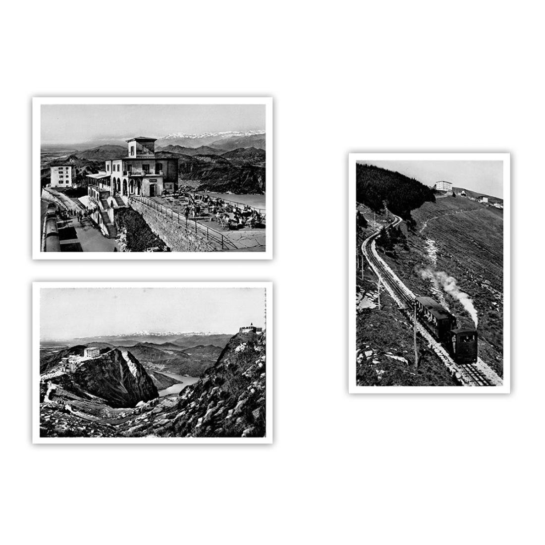 1) Monte Generoso vista sul lago di Lugano e Monte Rosa 2) Ferrovia e alberghi Monte Generoso 3) Monte Generoso vista verso le Alpi e lago di Lugano Serie di numero 3 Vecchie Fotografie originali come da fotodimensioni singola fotografia cm 9 x 6 c.a.