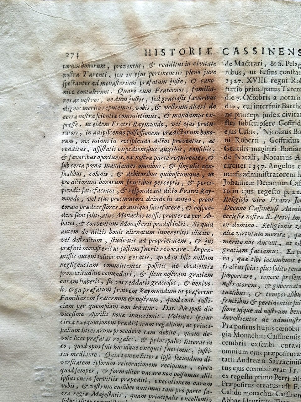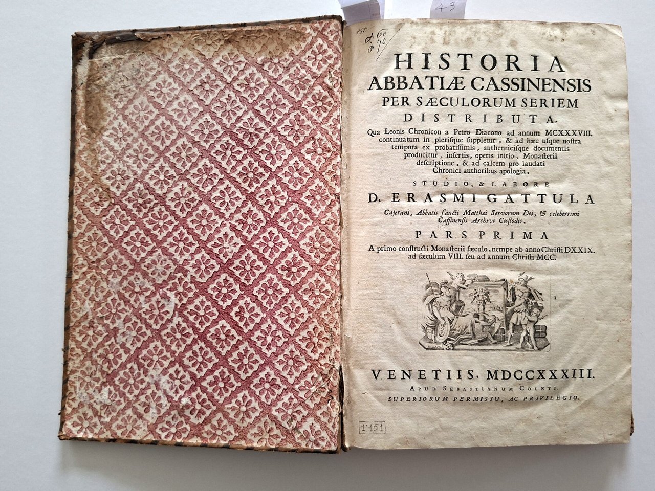 Montecassino. - Gattola (Gattula), E. Historia abbatiae Cassinensis per saeculorum seriem distributa. 2 parti in 1 volume. Venezia, S. Coleti, 1733