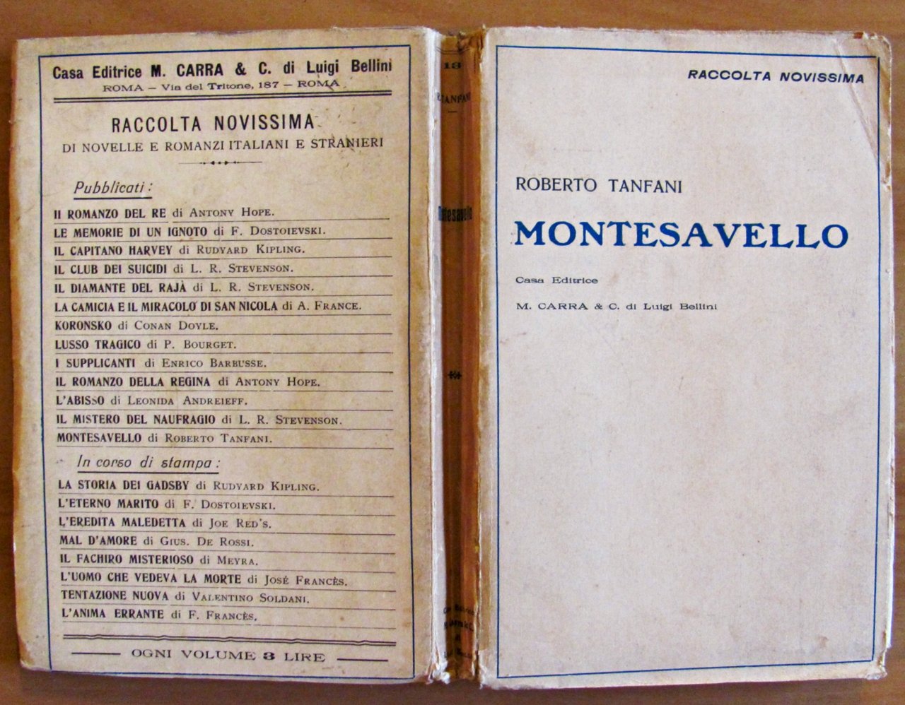 Raccolta Novissima N.18. Casa Editrice M. Carra - Roma, I edizione 1920. Brossura editoriale con lievissime fioriture del tempo a qualche pagina e lievissime imperfezioni alle cuffie del dorso. 11,5x17,5; pp.274. Buonissimo stato. , Molto buono (Very Good)