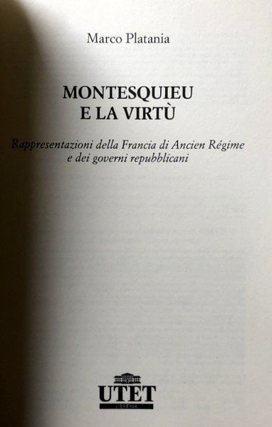 MONTESQUIEU E LA VIRTÙ. RAPPRESENTAZIONI DELLA FRANCIA DI ANCIEN RÉGIME E DEI GOVERNI REPUBBLICANI