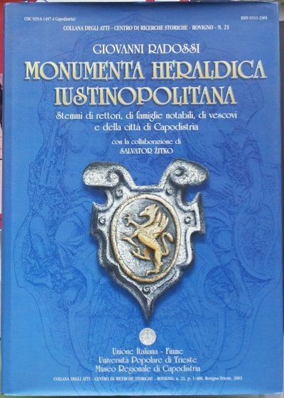 Grande e splendido volume del Centro ricerche storiche di Rovigno (n. 21). Stemmi di rettori, famiglie notabili, vescovi e della città di Capodistria. Rilegato con sovraccoperta come nuovo. rilegato