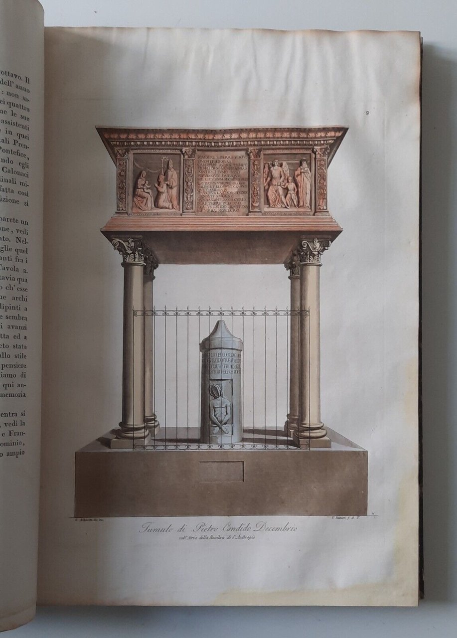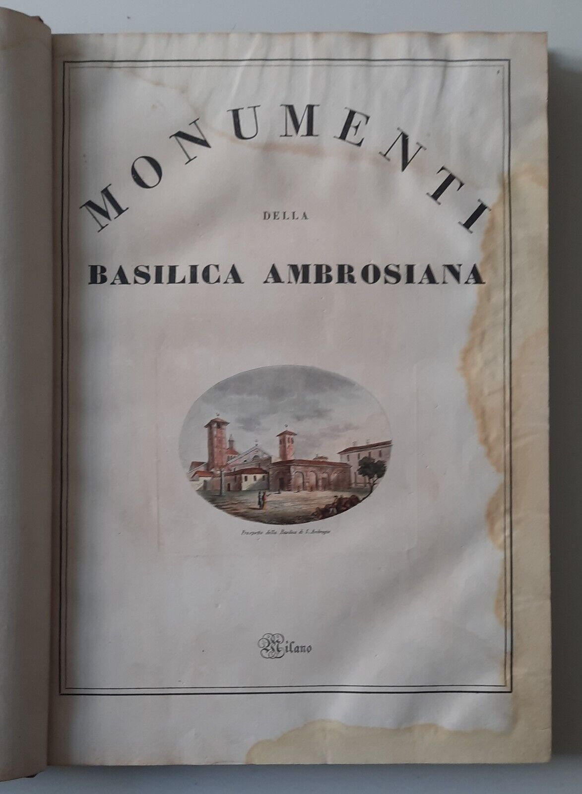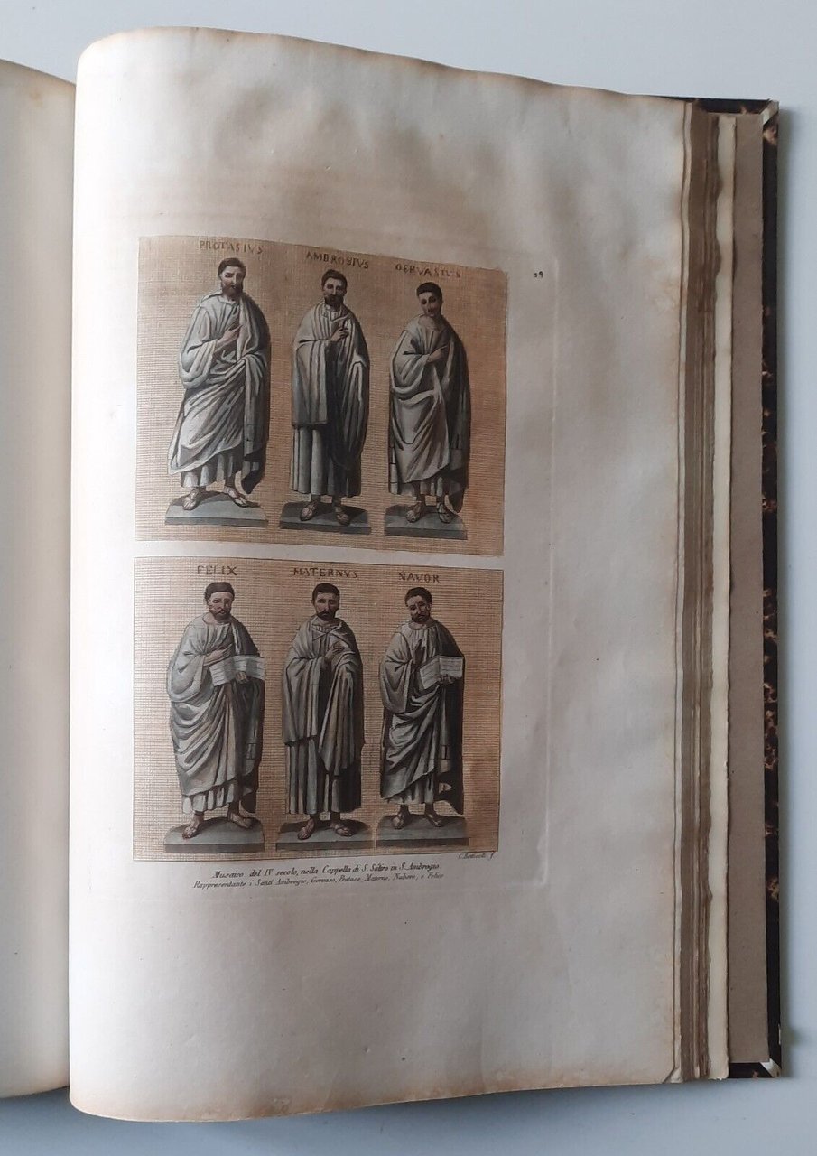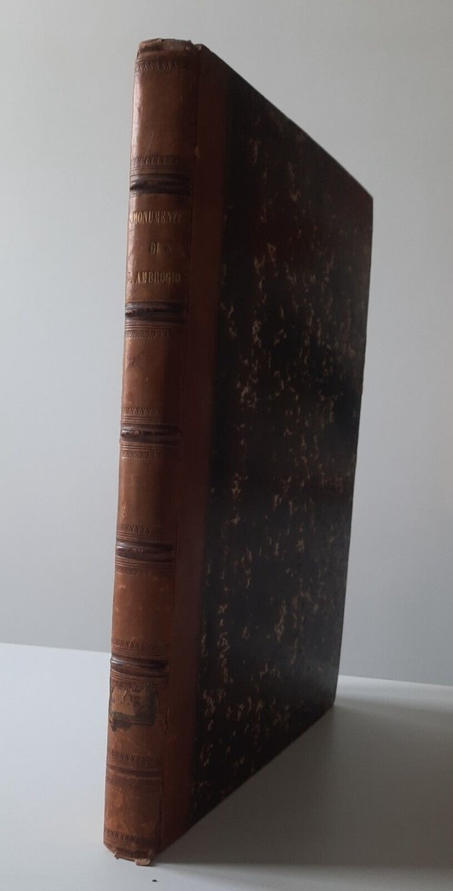 MONUMENTI DELLA BASILICA AMBROSIANA GIULIO FERRARIO MILANO S.D.In folio, [8] 224, legatura in mezza pelle con titolo in oro al dorso, 28 di 31 tavole a colori.Macchie al margine esterno alle prime 40 pagine, taglio alla cerniera, abrasioni al dorso.Ulteriori dettagli e immagini a richiesta.