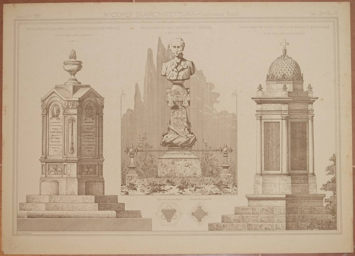 MONUMENTO MAGNELLI - CIMIT. DI S. MINIATO (FIRENZE) TITO BELLINI ARCH. MONUMENTO NEL CIMITERO DI VARESE L. BOFFI ARCH. MONUMENTO CIOFI CIMIT. DI SAN MINIATO (FIRENZE) O B. DEL BUONO ARCH.