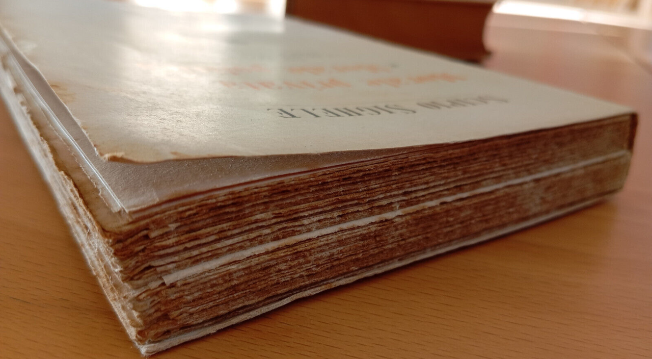 Copertina con segni e fioriture, come da foto. Tagli scuriti e con fioriture, come da foto. Legastura con alcune pagine che hanno ceduto ma nel complesso non compromessa