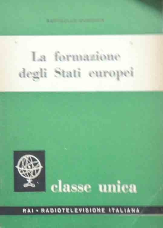 Raffaello Morghen, La formazione degli Stati europei, Eri – Edizioni Rai Radiotelevisione Italiana, Torino 1959, pp. 228, ill. b.n., cm 18, br. ed. Collana Classe Unica, n. 97. Leggere tracce d’uso, minime fioriture, lieve brunitura della carta, per il resto buona copia.