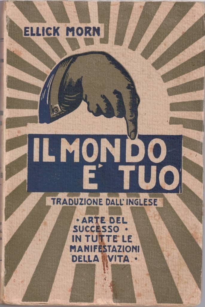 Ellick Morn, Il mondo è tuo. Arte del successo in tutte le manifestazioni della vita, S. Lattes e C. Editori, Torino-Genova 1922, decima ed., pp. VII, 327, cm 20, br. ed. Tracce d’uso, qualche fioritura, ombra di gora alla seconda di copertina e al margine inferiore delle ultime carte, per il resto ancora buona copia.