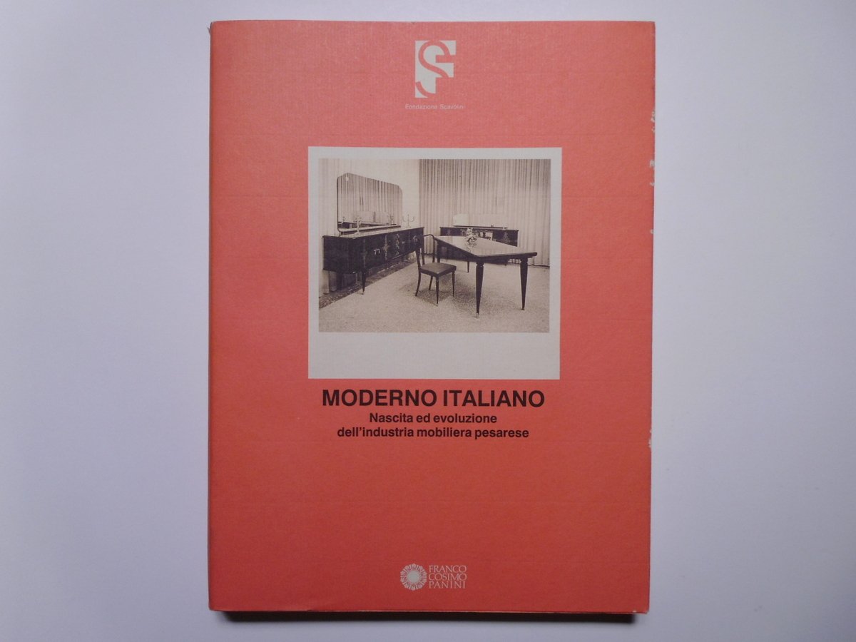 G. Morpurgo, Moderno Italiano Nascita ed evoluzione dell'industria mobiliera pesarese Franco Cosimo Panini Editore, 1990. Cm 28x21; pp. 249 + 107 ill. fotog. n. t. in b. n. e a col. Cartoncino edit. rosso con sovraccoperta edit. ill. a col. Condizioni di conservazione Esemplare in buone condizioni di conservazione. Piccole abrasioni alla sovraccoperta e un taglietto al margine sup. del dorso della sovraccoperta. Un segno al dorso e una piccola perforazione nel corrispondente punto della sovraccoperta. SETT131.L18805G