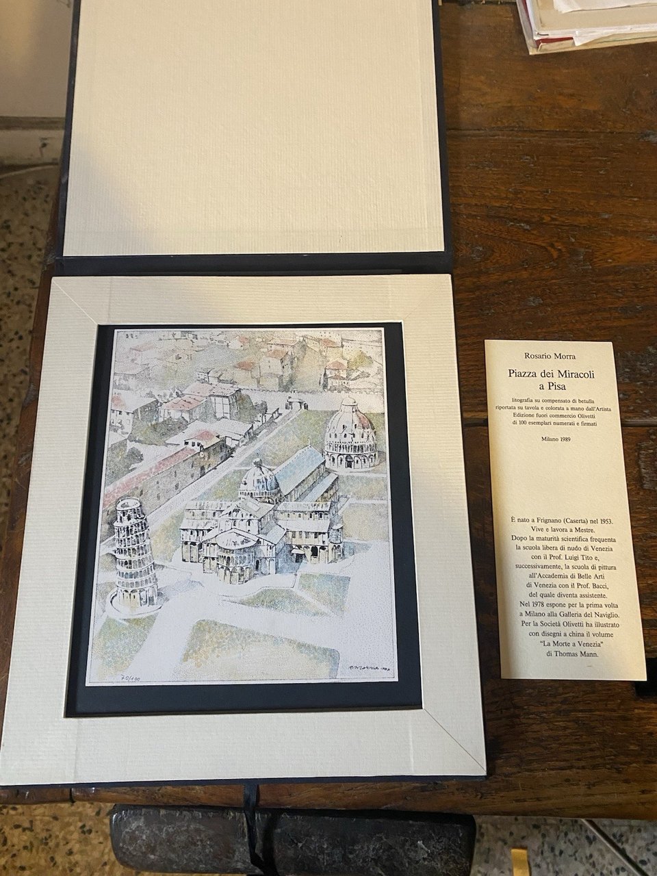 Litografia su compensato di betulla riportata su tavola e colorata a mano da Rosario Morra Tiratura di 100 esemplari numerati e firmati dall'Artista Legaura editoriale con laccetti Ottimo stato