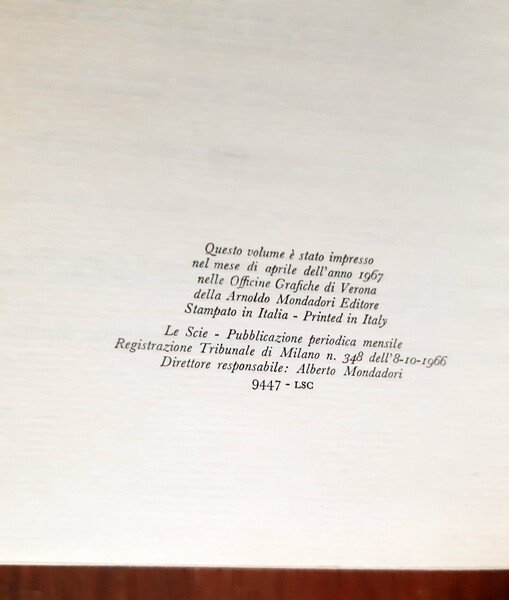 Un volume, leg. rigida, con sovracoperta illustrata; pp. XIII, 951. Prima edizione. Rif.: IT\ICCU\LO1\0018635. OCLC, 636125654. Cond.: Buone (con tracce d'uso alla sovracoperta).