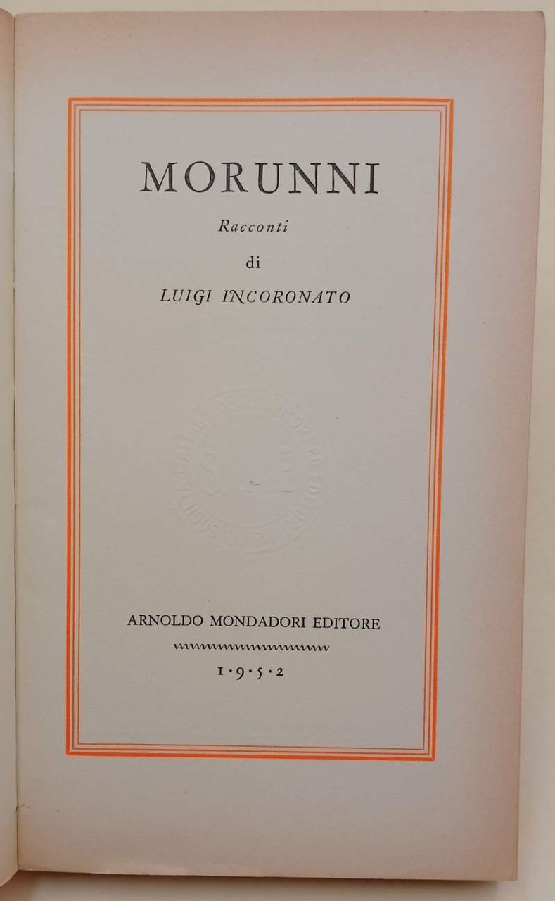 In 8', br. ed. , sovrac. in acetato, pp. 218, racconti. piega all'ang. inf del piatto post., con strappi all'acetato, scolorimenti al dorso, interno in buono stato, bruniture e segni del tempo.