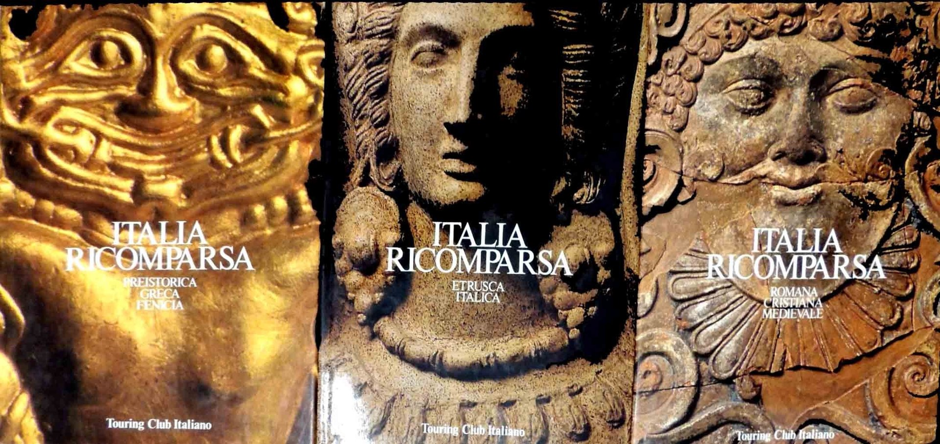Italia ricomparsa, testi di Sabino Moscati, fotografie di Toni Nicolini, Touring Club Italiano, Milano 1983-1984, 3 voll., pp. 530, ill. b.n. e col., cm 32, cart. ed. con titoli al dorso e al piatto e sovraccoperta. Serie completa, composta da tre volumi. Volume I: Italia ricomparsa. Preistorica greca fenicia, 1983, pp. 179. Volume II: Italia ricomparsa. Etrusca italica, 1984, pp. 171. Volume III: Italia ricomparsa. Romana cristiana medievale, 1984, pp. 180. Due strappetti senza mancanze alle sovraccoperte, minima ingiallitura della carta, per il resto molto ben conservati.
