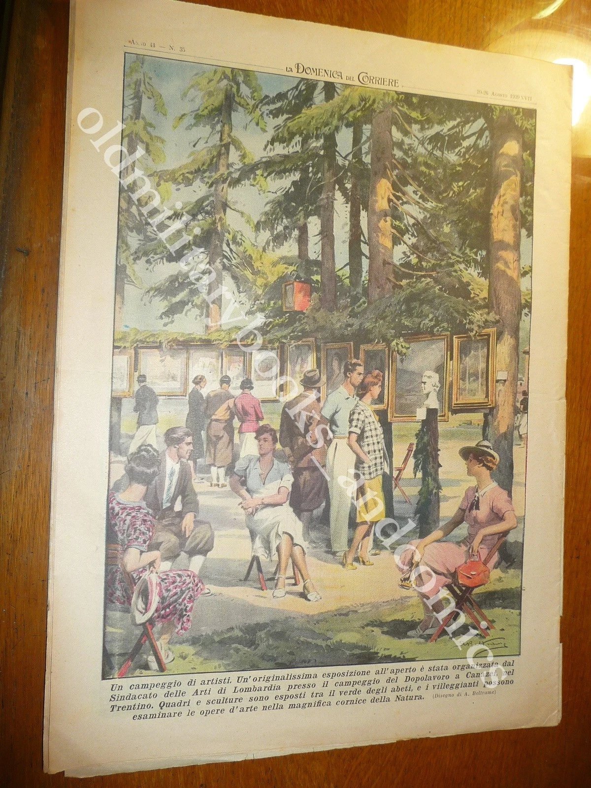 RETRO: Un campeggio di artisti. Un’originalissima esposizione all’aperto è stata organizzata dal Sindacato delle Arti di Lombardia presso il campeggio del Dopolavoro a Canazei, nel Trentino. Quadri e sculture sono esposti tra il verde degli abeti, e i villeggianti possono esaminare le opere d’arte nella magnifica cornice della Natura.