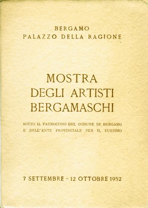 (16) di reclame in b/n, 92 p., (18) di reclame in b/n : illustrato in b/n ; 17 cm. Catalogo della mostra tenuta a Bergamo, Palazzo della Ragione (7 settembre - 12 ottobre 1952). Completamente illustrato. Brossura. Ottimo. ****
