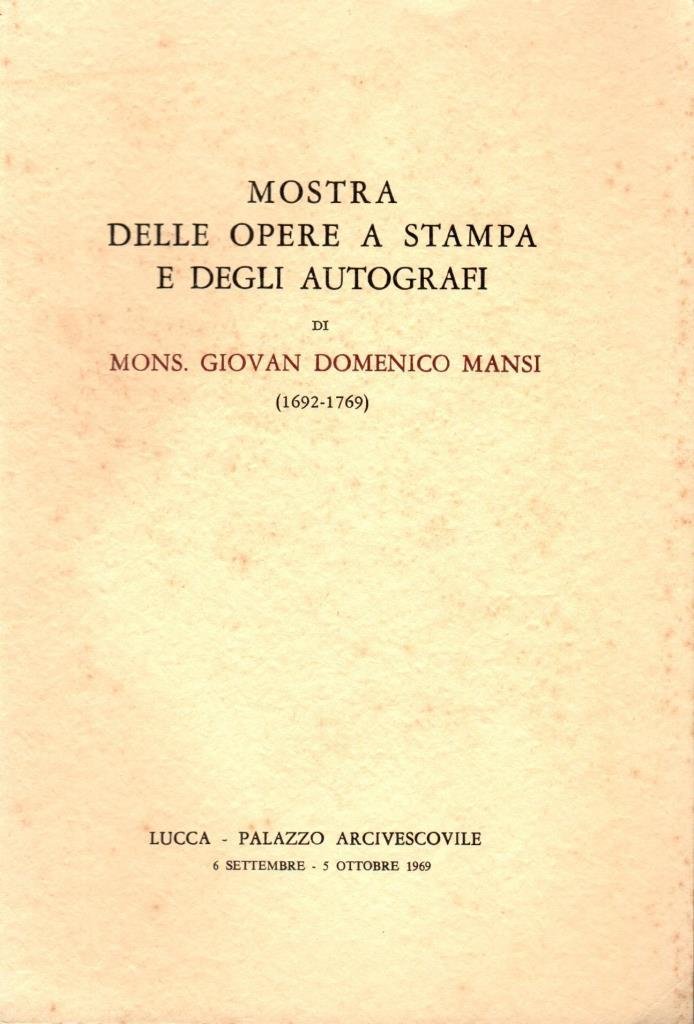 "Mostra delle opere a stampa e degli autografi di mons. Gian Domenico Mansi", edizione 1969, formato 17 x 24,5.