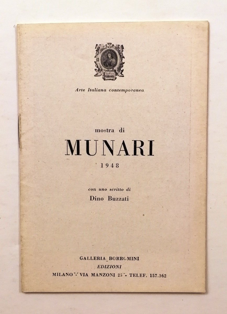 Bross. spillata in 24° pp. 12 Con un ritratto fotografico di Munari alla sguardia e 5 tavole della mostra ( concavo-convesso, macchine inutili etc.) Coll. Arte Italiana Contemporanea. In ottimo stato. Raro