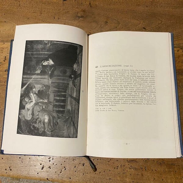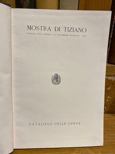 Volume in discrete condizioni. Catalogo delle opere della mostra di Tiziano svoltasi a Venezia nel 1935-1943, sotto "l'alto patronato di Sua Maestà il Re". Copertina semirigida in tessuto blu, con titolo sul fronte in caratteri dorati. Pagine ben conservate, ma ingiallite sui bordi. Contiene numerosissime fotografie delle opere.